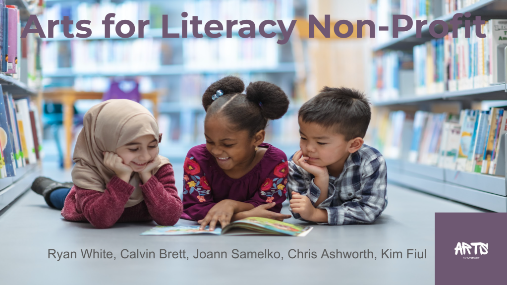Arts for literacy is a fictional non profit using art as a vehicle for increasing literacy.